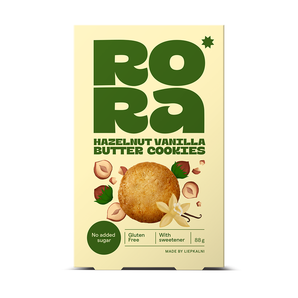 Crisp butter cookies made with crunchy hazelnut pieces and natural vanilla, with no added sugar.